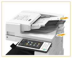 Quando posicionar originais de tamanho grande, puxe a extensão da bandeja de abastecimento de originais e da bandeja de saída de originais para evitar que caiam do alimentador. (As extensões de bandejas estão disponíveis somente para o Single Pass DADF-A.)