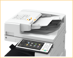 Se ainda houver originais, o indicador de saída de originais piscará quando você colocar originais de outro trabalho no alimentador (somente para o Single Pass DADF-A).