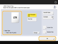 Quando alterar o tamanho e tipo de papelSe você carregar um tamanho ou tipo diferente de papel na máquina, certifique-se de alterar as configurações. Se as configurações não forem alteradas, a máquina não imprimirá adequadamente. Especificando o tipo e o tamanho do papel na gaveta de papel Ao alterar o tamanho do papel, altere o rótulo do tamanho do papel conforme necessário (Posicionando a etiqueta de tamanho apropriado do papel). Observe que o rótulo do tamanho do papel pode incluir tamanhos de papel que não estão disponíveis na máquina. |