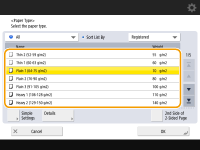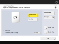 Se uma tela diferente da tela de especificação de tamanho e tipo de papel for exibidaSe uma mensagem solicitando o ajuste da guia do papel for exibida, ajuste a largura da guia do papel novamente e pressione <OK>. |