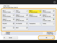 <OK>. Registrando tamanho e tipo de papel usado com frequência na bandeja multiuso