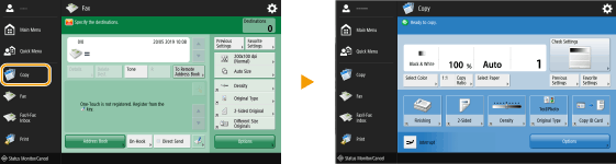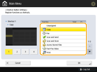 Você pode criar um botão de atalho para as funções na tela <Main Menu>. Use esse botão para acessar uma função diferente sem voltar à tela <Main Menu>. Para criar um atalho, faça login com privilégios de administrador.