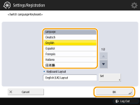 Pressione <Switch Language/Keyboard>, selecione um idioma na lista e pressione <OK>.