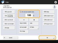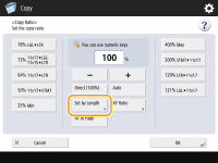 ![]() | Você pode ampliar ou reduzir especificando a razão das cópias (%). Você pode especificar as razões verticais e horizontais individualmente. Ampliando ou reduzindo cópias especificando a razão das cópias | |
