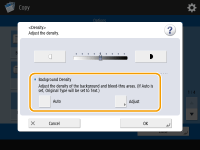 ![]() | Você pode ajustar a densidade do plano de fundo. Isso possibilita fazer cópias mais claras de originais como jornais ou originais com planos de fundo colorido. Ajustando a densidade do plano de fundo das cópias |