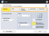 | | Ao copiar documentos que possuem informações confidenciais, você pode incorporar texto invisível, como "ULTRASECRETO" ou "CONFIDENCIAL" para avisar usuários não autorizados a não copiá-los. Quando você copiar um documento que já foi copiado, o texto incorporado aparecerá em toda a página, impedindo a cópia não autorizada dessas cópias. Opções do SistemaDependendo da máquina usada, essa função estará disponível como padrão. |