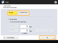 Se você selecionar <All Pages>, o contador da máquina considerará a amostra configurada como uma cópia.