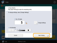 Pressione <Start Printing> para imprimir o número de cópias especificado. Se você selecionou <All Pages> na etapa 5, o número de cópias menos um é impresso. Se você selecionou <Specified Pages> na etapa 5, o número total de cópia é impresso.