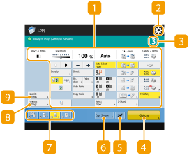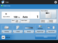 Exibe o status de configuração como a razão de cópias, o tamanho do papel, o número de cópias, etc. Certifique-se de confirmar as configurações aqui para copiar corretamente. Para alterar as configurações, pressione o botão abaixo da seção de exibição. Operações básicas de cópia