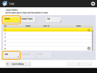 Você pode especificar o intervalo da folha inserida de 1 a 30.000 páginas. Você pode inserir até 100 folhas como folhas inseridas e páginas de capítulo. |