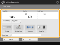 Se deseja sobrepor a imagem de forma no verso ao realizar uma cópia em frente e verso, configure <Back Side>. Para sobrepor a mesma imagem de forma na frente, pressione <Same as Front Side>. Para sobrepor uma imagem de forma diferente na frente, pressione <Set> e prossiga para a etapa 5.