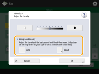 ![]() | Você pode ajustar a densidade do plano de fundo. Você pode enviar originais com plano de fundo colorido com clareza ou originais finos, como jornais, em que os caracteres e imagens na parte traseira ficam visíveis na transparência. Ajustando a densidade do plano de fundo. |