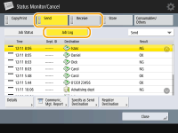 Registrando um endereço do histórico de enviosÉ possível registrar um endereço no Catálogo de endereços ou um botão de um toque via histórico de envios na tela <Status Monitor/Cancel>. Isso permite economizar o esforço de inserir o número de fax diretamente e também evita enviar um fax para um número incorreto devido a um erro de digitação. |