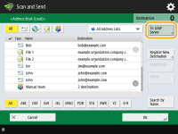 Menu suspenso para seleção de tipos do Catálogo de endereçosPermite que você exiba um grupo específico de destinos. Quando você tiver feito login na máquina com gerenciamento de autenticação pessoal, selecione <Personal Address List> para exibir seu Catálogo de endereços pessoal.