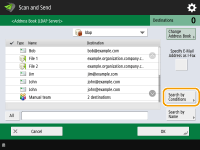 Pressione <Destination Conditions> e selecione as funções suportadas pelo destinatário. Certifique-se de conferir as funções de recebimento do destino antes de especificar as condições.