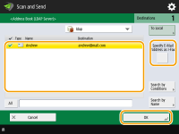 Selecione o destino e pressione <Specify E-Mail Address as I-Fax>