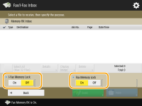 Selecione <Memory RX Inbox> e configure <Fax Memory Lock> como <On>.