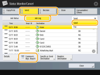 1 | Pressione <Send> ou <Receive> <Job Log>. |