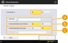 Para verificar um nome comum no certificado de servidor, selecione <On> em <Verify Authentication Server Name> e insira o nome do servidor de autenticação registrado pelo usuário do login em <Authentication Server Name>.