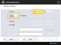 Pressione <On> para <Use TLS> e pressione <Key and Certificate>.