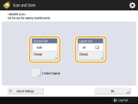 Para imprimir um livreto com as mesmas dimensões do original, selecione o tamanho do papel das páginas de rosto. Se você especificar o mesmo tamanho em <Original Size> e <Layout Size>, o tamanho da imagem será automaticamente reduzido. |