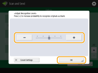 Pressione <Adjust Recog. Level>, defina a precisão para detectar papel em branco e pressione <OK>.