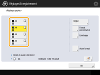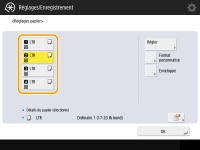Si le type de papier chargé ne s'affiche pas, appuyez sur <Réglages détaillés> pour le sélectionner dans la liste.