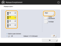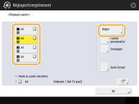 Sélectionnez la source de papier dans laquelle le papier est chargé et appuyez sur <Régler>.