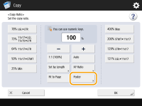 Especifique a razão de cópia usando os botões na tela ou as teclas numéricas.