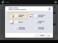 Si copia un original que ya está en formato de cuadernillo, como, por ejemplo, uno impreso desde el equipo con la copia de cuadernillos, pulse <Cuadernillo sin lectura>.