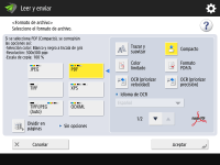 ![]() | Los originales escaneados se convierten en archivos electrónicos como PDF. Seleccione el formato de archivo en función de la finalidad y del entorno de uso. |