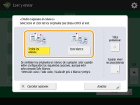 Si se selecciona un ajuste distinto de <Auto (Color/B/N)> o <Auto (Color/Gris)> en <Selección color>, se lleva a cabo la misma operación que en <Todos los colores>, aunque se establezca <Solo blanco>.