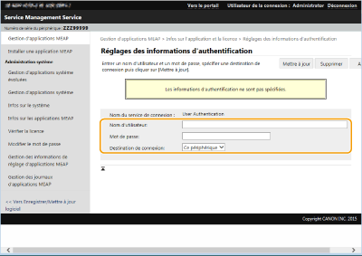 2 | Cliquez sur [Réglages des informations d'authentification]. ![]() |