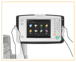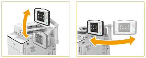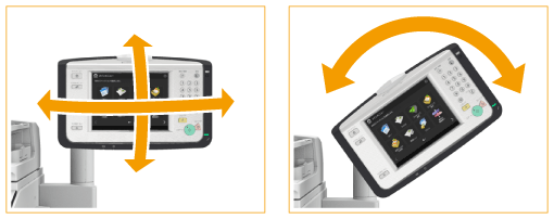 Pour une meilleure visibilité de l'afficheur tactile, vous pouvez régler l'inclinaison et la position du panneau de commande. Pour régler le panneau de commande, maintenez-le avec les deux mains, puis réglez doucement l'inclinaison et la position, comme indiqué dans l'illustration ci-après.