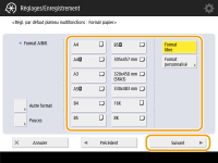 Lors de l'enregistrement de papier de format standard