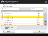 Si le type de papier du papier que vous avez chargé n'est pas repris sur l'écran des réglages détaillés, vous pouvez l'enregistrer dans la liste des types de papier.