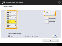 Si le type de papier chargé ne s'affiche pas, appuyez sur <Réglages détaillés> pour le sélectionner dans la liste.