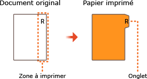 Si vous imprimez sur l'onglet et que vous imprimez la cinquième page de l'original sur l'onglet, saisissez « 5 ».