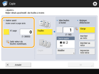 Appuyez sur <N° page> pour saisir la page pour insérer le papier d'onglet à l'aide des touches numériques.