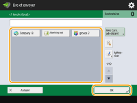 Ecran Fonctions de base de numérisationSpécification des destinations du carnet d'adresses
