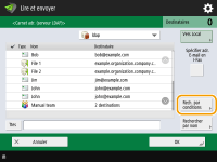Vous pouvez chercher des destinations avec plusieurs conditions. Spécifiez la première condition de recherche, appuyez sur <Ajouter cond. de recherche>, et sélectionnez ensuite <ou> ou <et> pour la condition suivante.