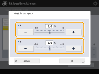 Si la taille de l'image copiée diffère légèrement de celle de l'original, suivez la procédure suivante pour effectuer un réglage précis de la taille de l'image. Vous pouvez modifier l'agrandissement de la largeur dans le sens horizontal et dans le sens vertical.