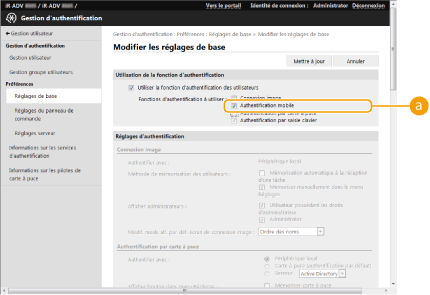 Sélectionnez les méthodes de connexion à utiliser, et spécifiez des réglages détaillés tels que pour les dispositifs d'authentification.