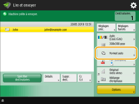 Pour effectuer un envoi avec <Auto>, définissez la résolution sur 300 ppp x 300 ppp ou 600 ppp x 600 ppp.