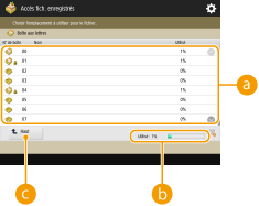 , <Tout sélectionner (100 fich. max.)> s'affiche. Si un ou plusieurs fichiers sont sélectionnés, <Effacer sélection> s'affiche. Appuyez sur <Tout sélectionner (100 fich. max.)> pour sélectionner jusqu'à 100 fichiers dans la boîte simultanément ou <Effacer sélection> pour les désélectionner.