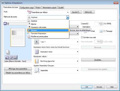 Sélectionnez [Stocker] depuis [Méthode de sortie] et cliquez sur [Oui].