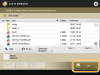 Affichez la localisation de sauvegarde et appuyez sur <Lire>.