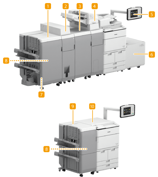 Para obtener más información sobre la combinación de opciones que se pueden instalar en el equipo, póngase en contacto con su distribuidor local autorizado de Canon. Es posible que algunas de las opciones no se muestren, dependiendo de la configuración del equipamiento opcional instalado en el equipo. |
