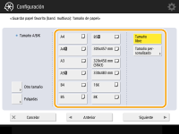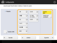 2 | Seleccione el tamaño de papel. ![]() ![]() Para obtener información sobre los tamaños de papel mostrados cuando se pulsa <Otro tamaño>, consulte Papel disponible. |