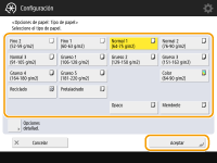 Seleccione el tipo de papel y pulse <Aceptar>.
